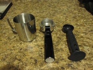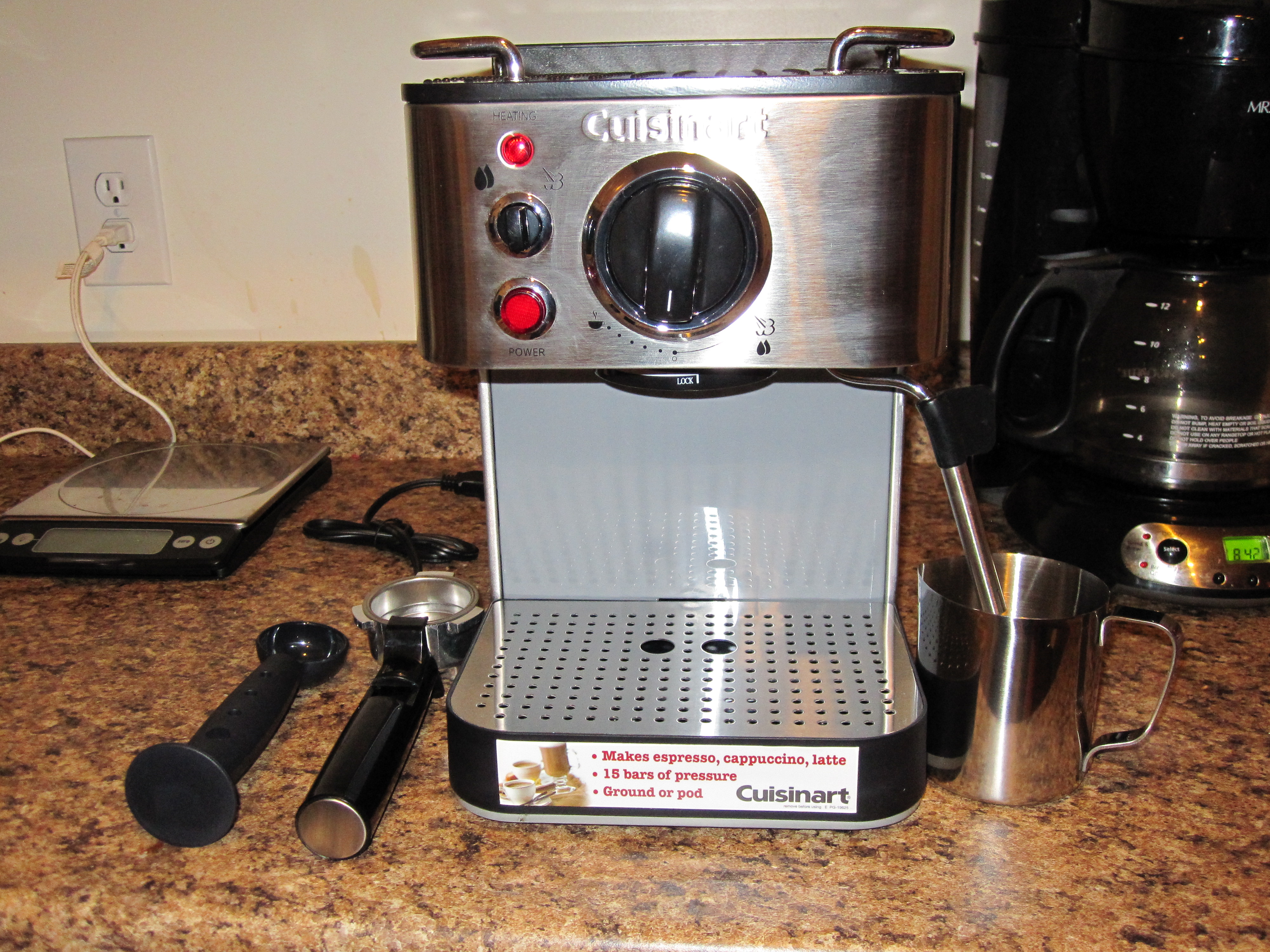 So as promised I set up the espresso machine for it’s inaugural run this weekend. It was a little daunting at first, but by mid-morning on Saturday I had it up and running. I followed the step-by-step directions in the book, which led me to cleaning the machine by running water through it. I had it all set up but there was no water running through at all. I was worried the machine wasn’t working properly and consulted the internet. On the Cuisinart website they have a demo video of how to use the machine. As I watched though I didn’t really learn much about the cleaning part, but I tried again. I fidgeted with the water tank in the back and voila, it worked! I ran the water through and decided it was time for the real deal.