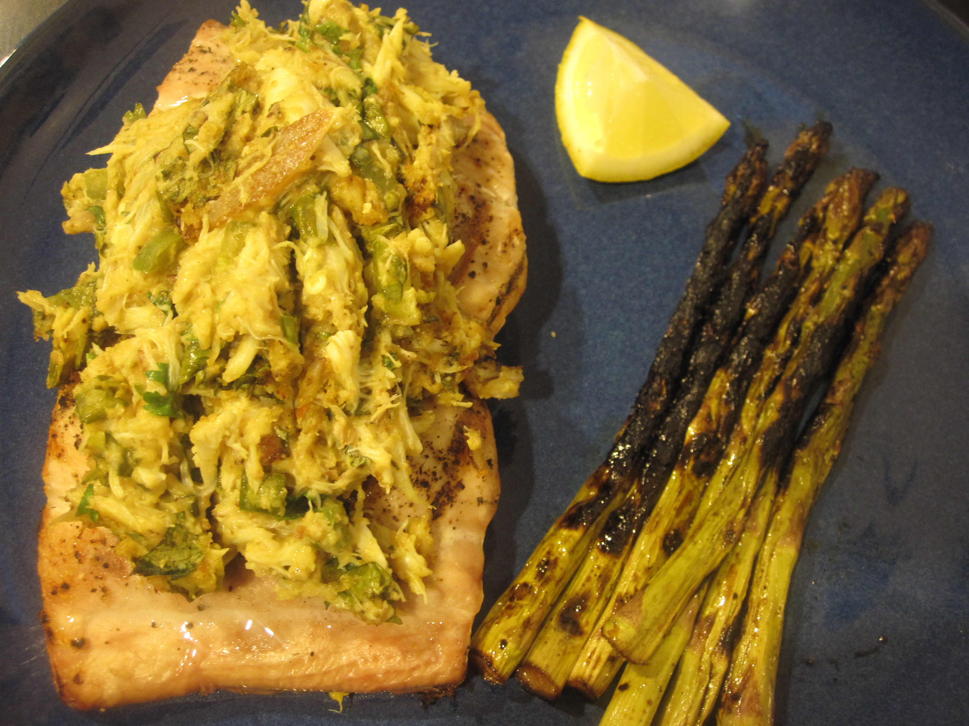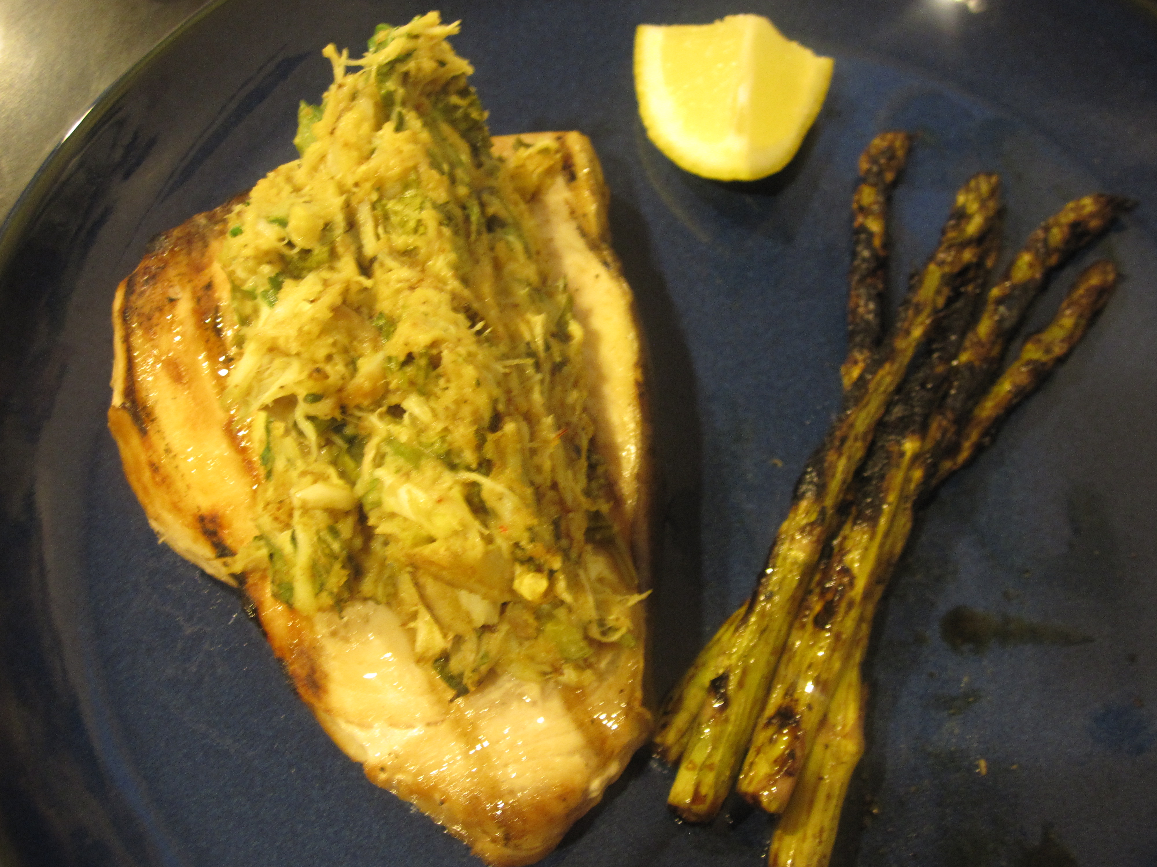 One response to “Crab Topped Grilled Fish (Mahi Mahi and Swordfish)