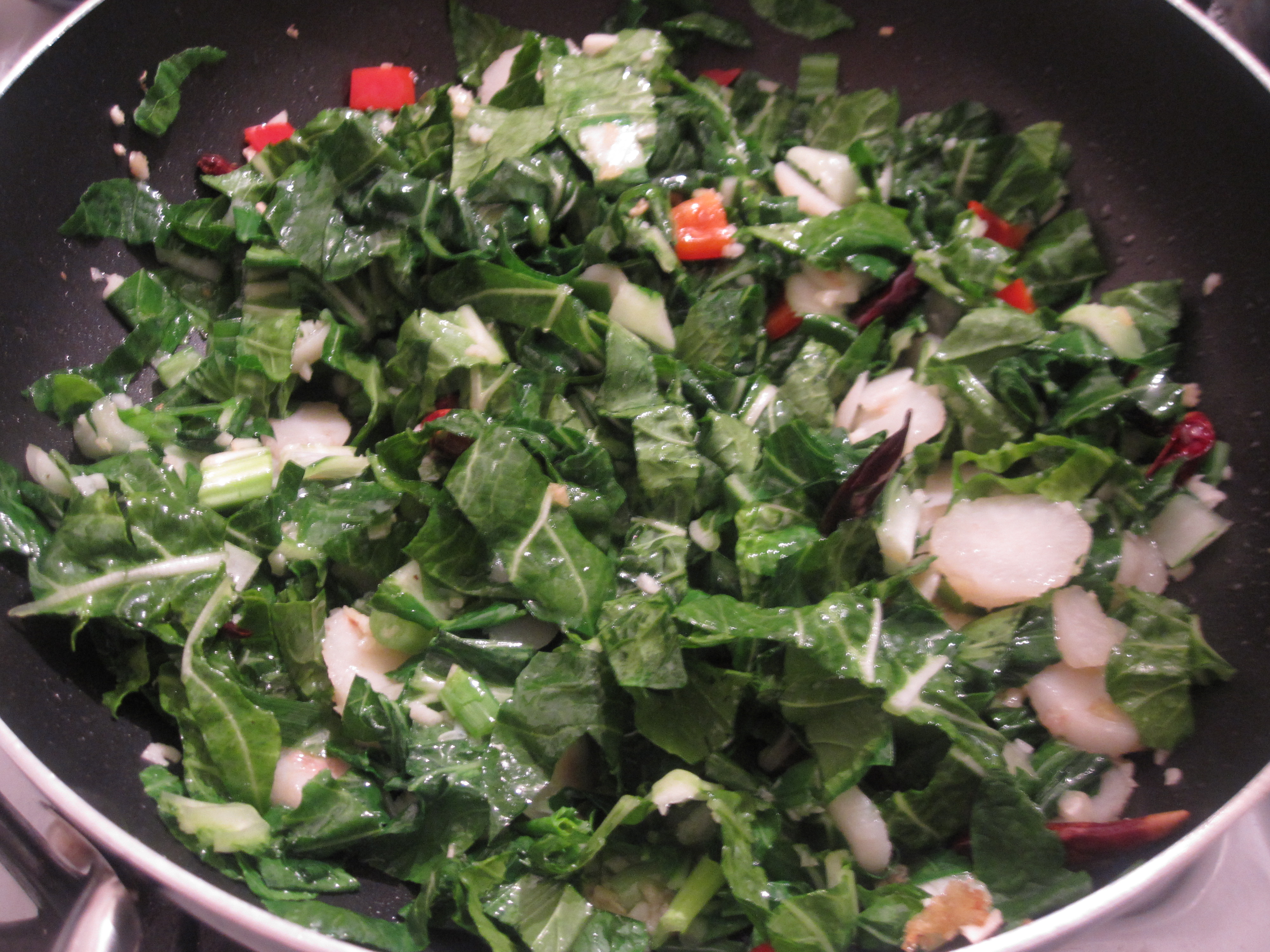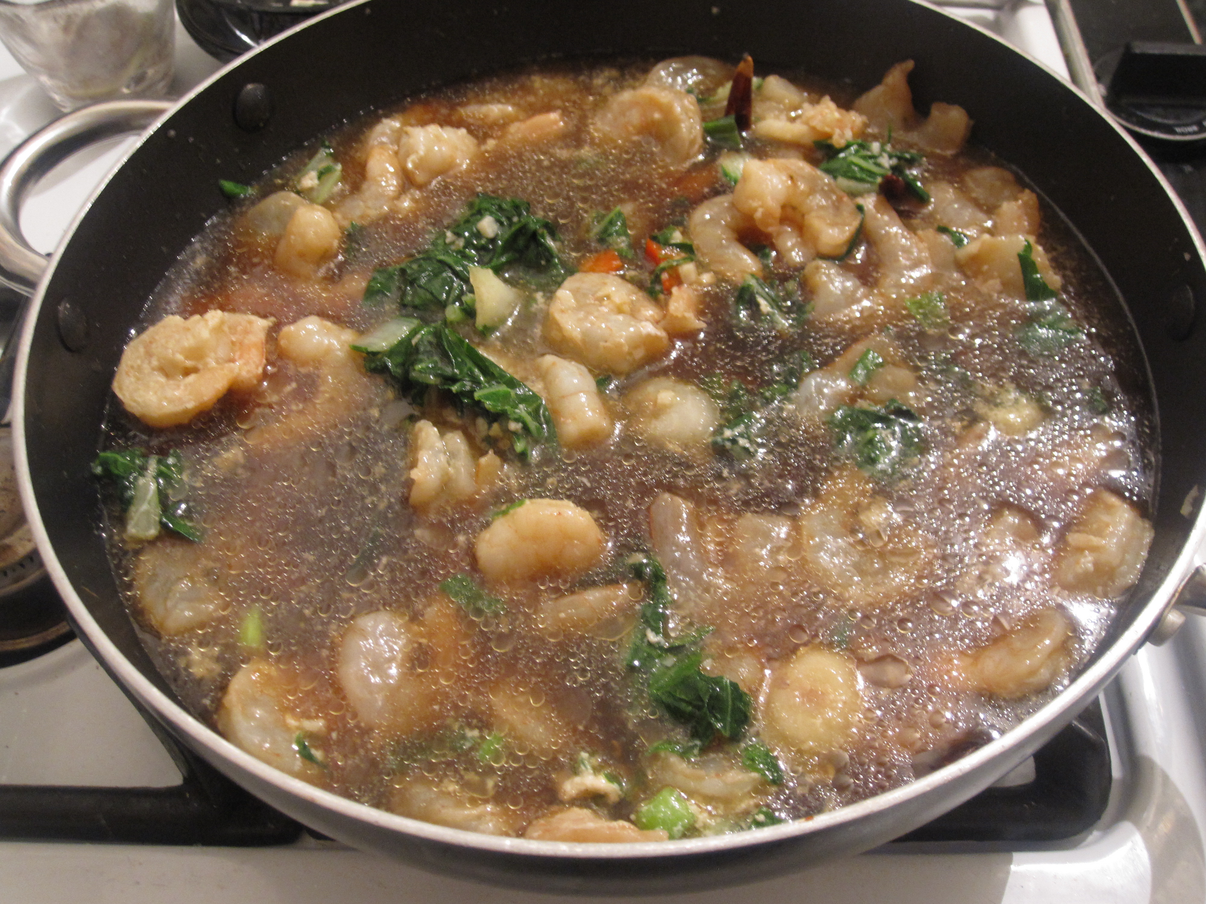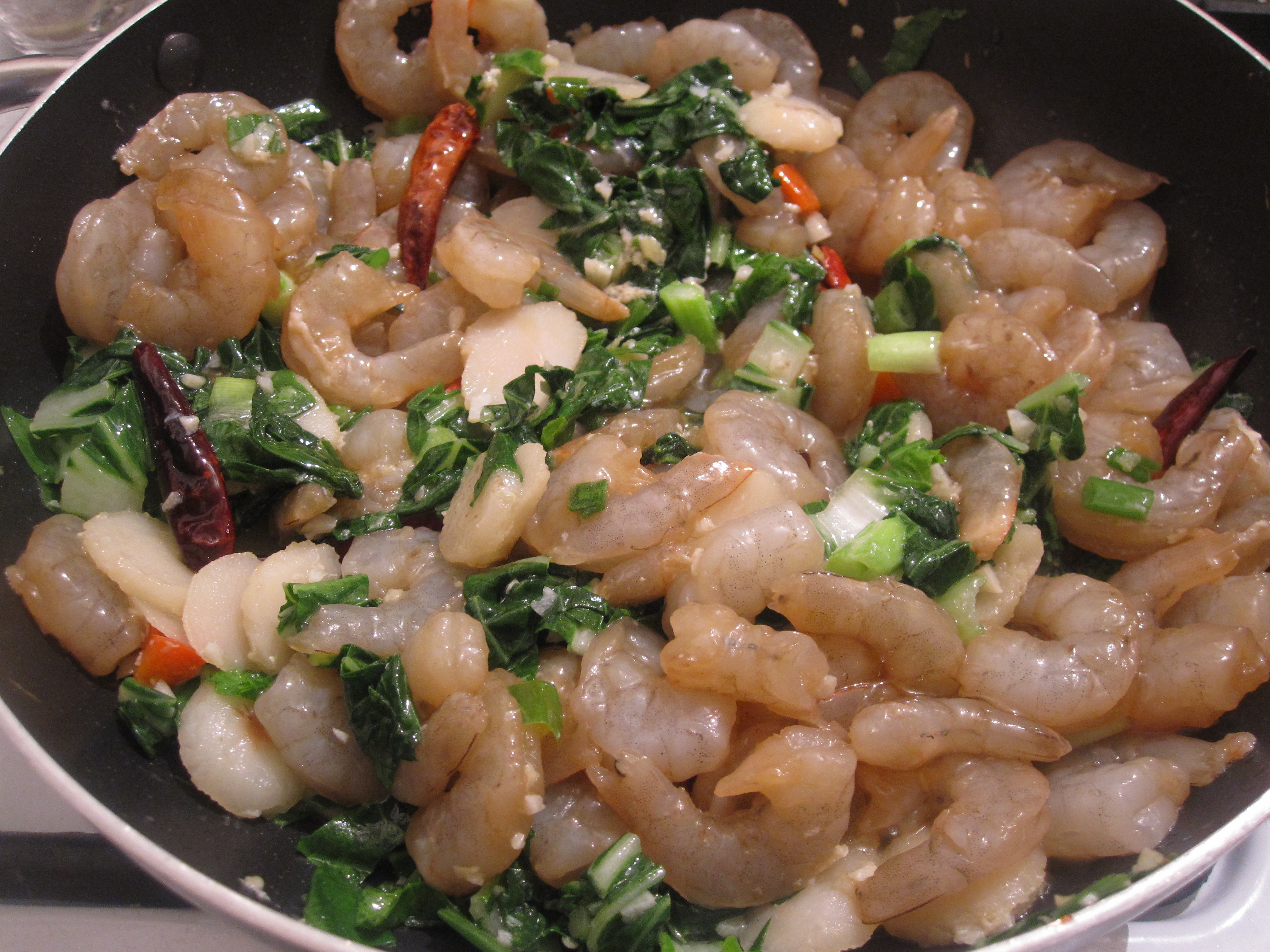I scoured the internet for a recipe and finally found one to follow. It was seriously on the 4th page of my google search! Overall I was pretty pleased with it. It was not perfect but it was pretty darn tasty. I am fortunate enough to have an Asian market nearby to get some obscure ingredients (all can be substituted for more readily available ones though!). So this dish was not only authentic but also very CHEAP. The only thing I purchased over $2.00 from the Asian market was the shrimp. For the ‘Burghers out there- I went to Lotus in the strip. There I got dried red chilis, rice wine, Chinese black vinegar, my veggies and the shrimp amongst some other things for another time.