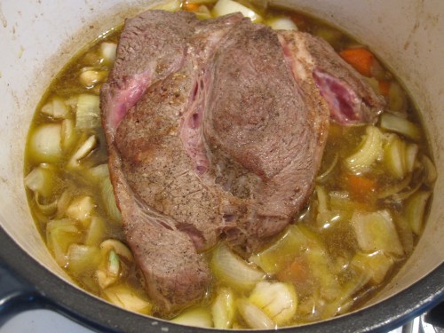 The meat was pretty much ready after the two hours and I left it in at 200 degrees for about another half an hour until we were ready for dinner. We scooped it up sort of like a stew without as much broth and it was great. The meat was so tender, well spiced, and juicy.