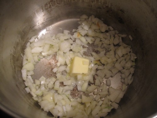 I double the recipe every time I make this soup since we like it so much! I make it on our large stock pot, which is not the most photogenic. Once the onions start to get translucent, add the flour and then the cream/half n half/milk (whatever you decide to use) and make a roux. Than add the chicken stock.