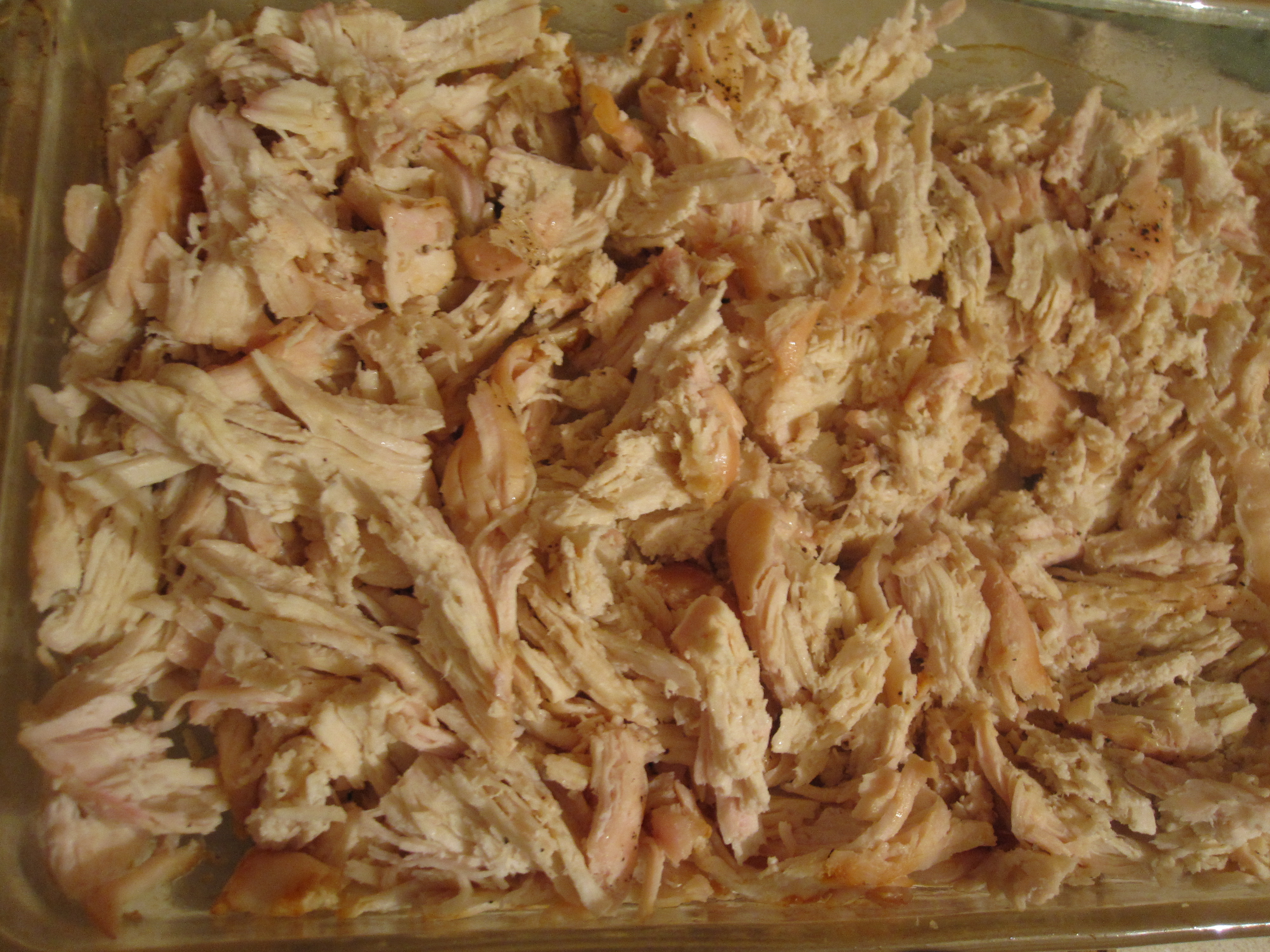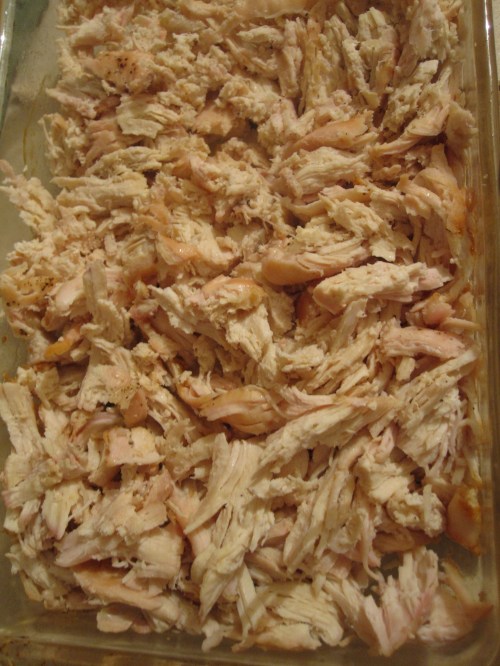 While all of this was going on, I also cooked some chicken. I baked 3 chicken breasts and shredded them up.