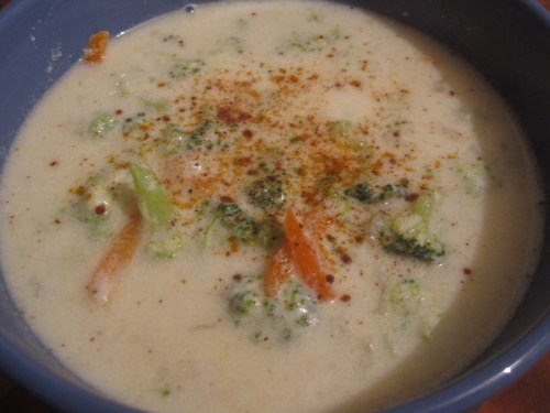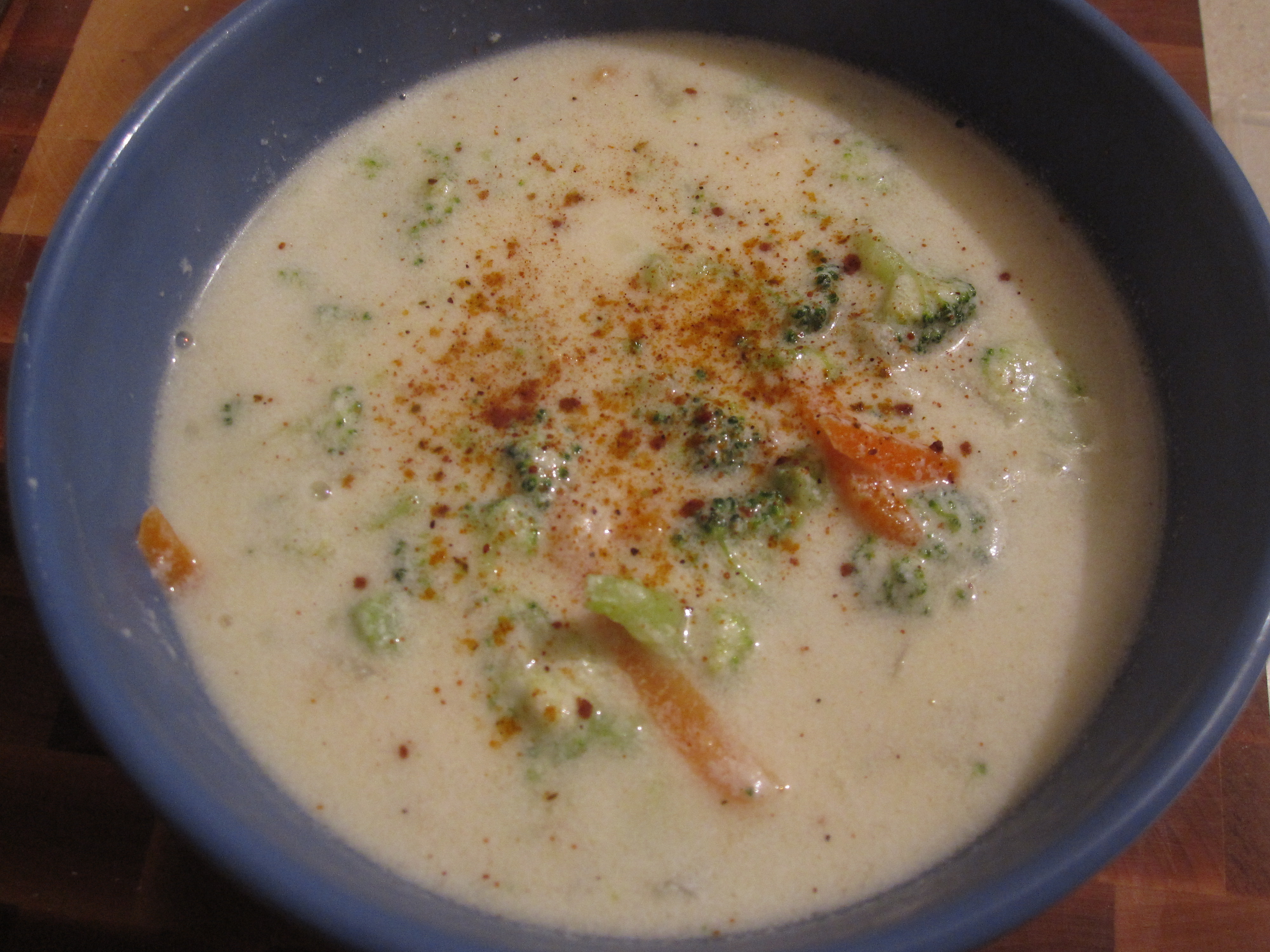 We really love this soup and it’s relatively easy to make once you get the hang of it. We add chicken for some added protein, but you can make it vegetarian if you prefer or if you don’t have any chicken on hand! I got inspired to learn how to make this after going to Panera for lunch way too many times. Their broccoli cheese soup is pretty good and I decided I needed to try to make it at home. I actually searched for their recipe and found this one from cd kitchen. I have tweaked it about over the last year and will link to my version of the recipe at the end of this post.