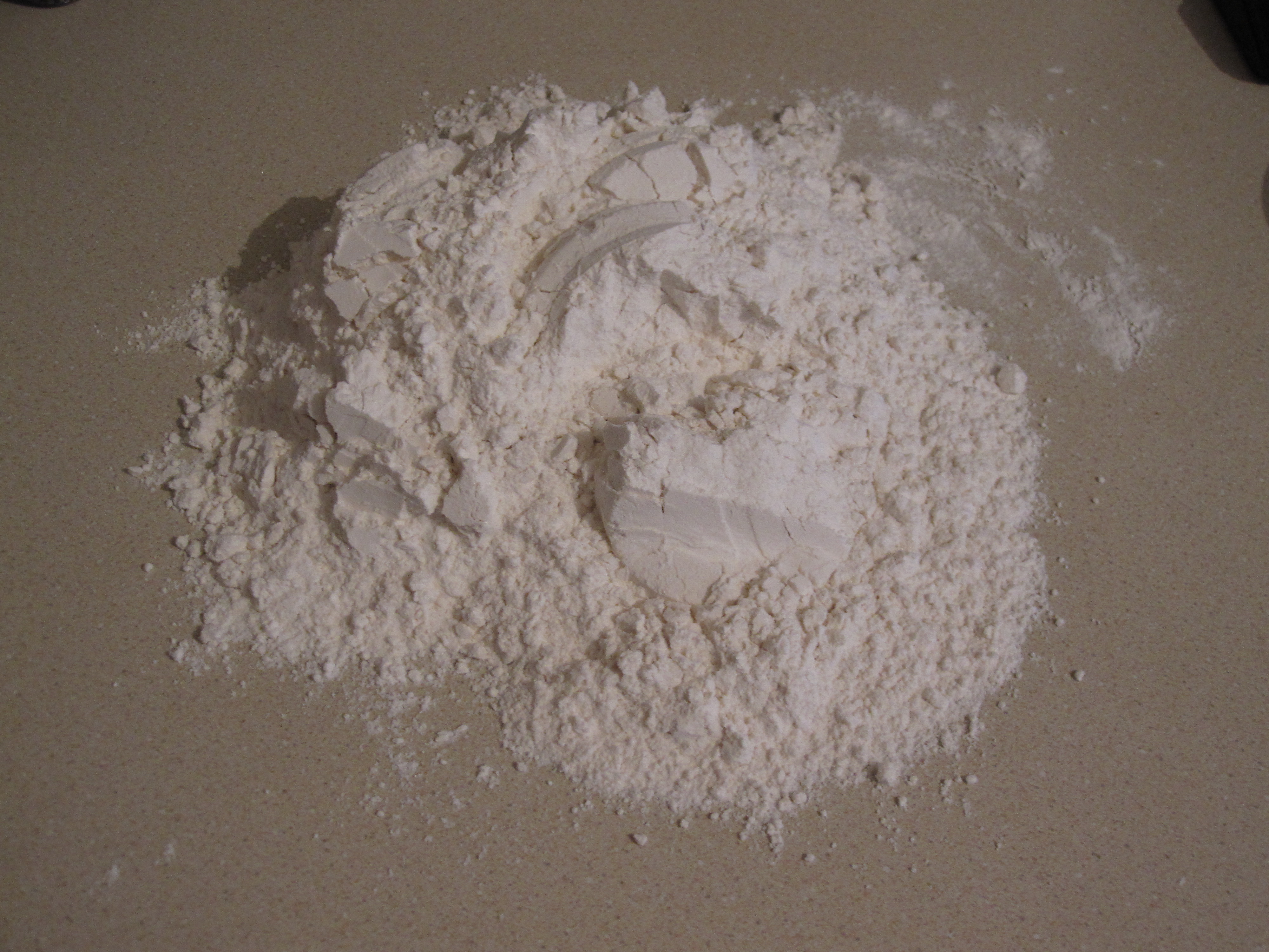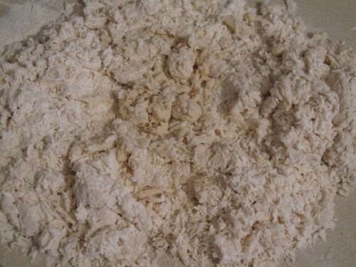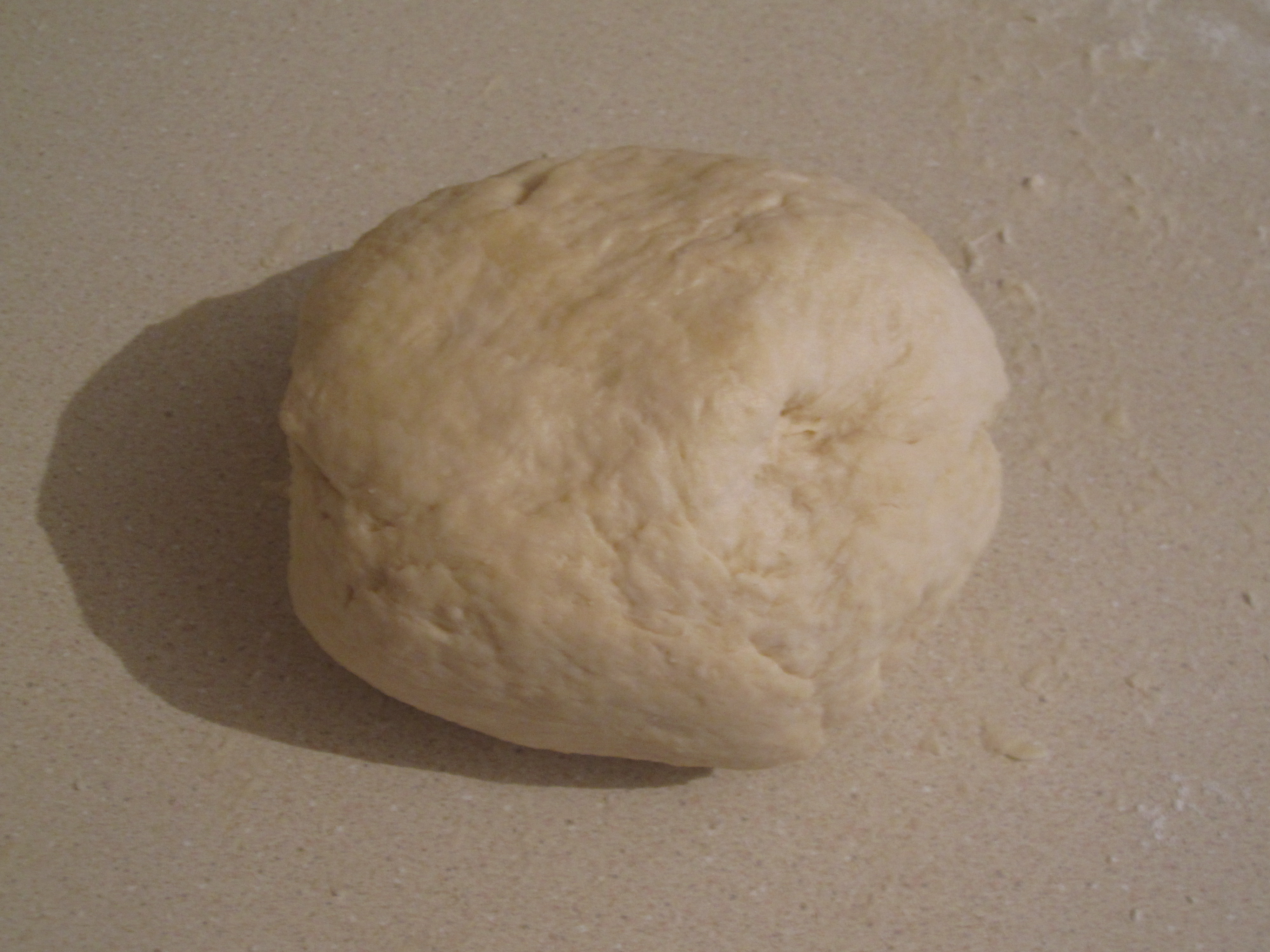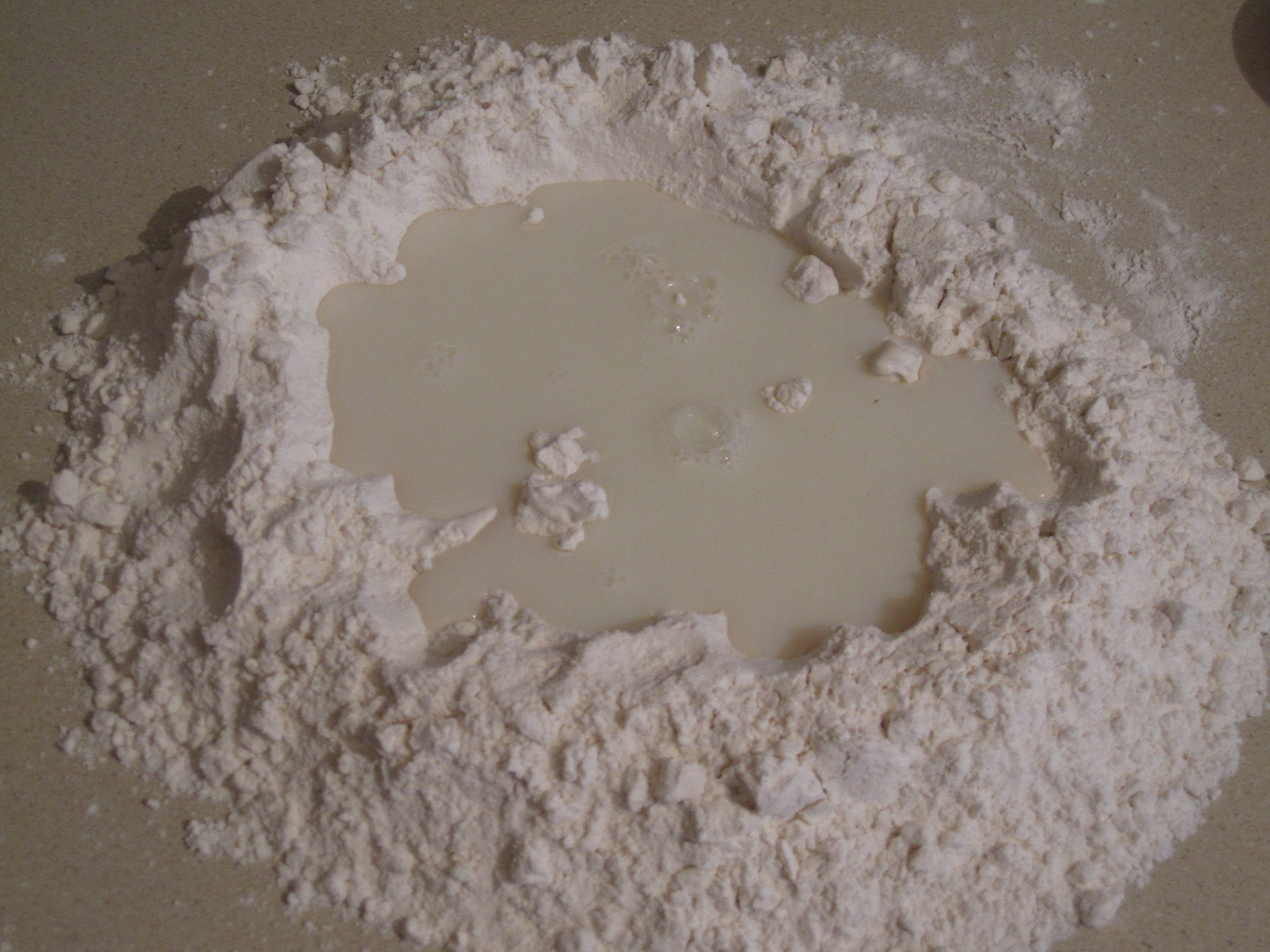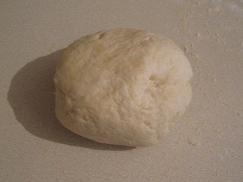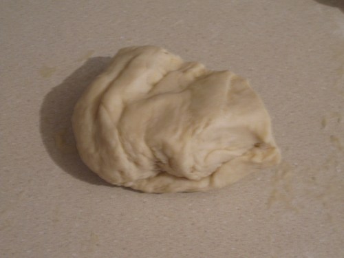 Start to fold the liquids into the flour which I learned is not as easy as it may seem.  Make sure not to break the outer barrier before most of the liquid is absorbed or it will run on the counter and floor, at least I’ve heard that may happen….  The dough is very sticky at this point but work at it and add the melted butter until you are able to form it into a ball and clean the counter with it.  Don’t overknead the dough and try to just get it to where it needs to be and set aside in a bag for a half an hour or so.