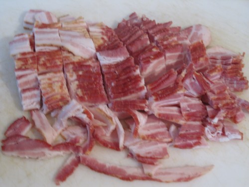 Cut the bacon into bite size pieces