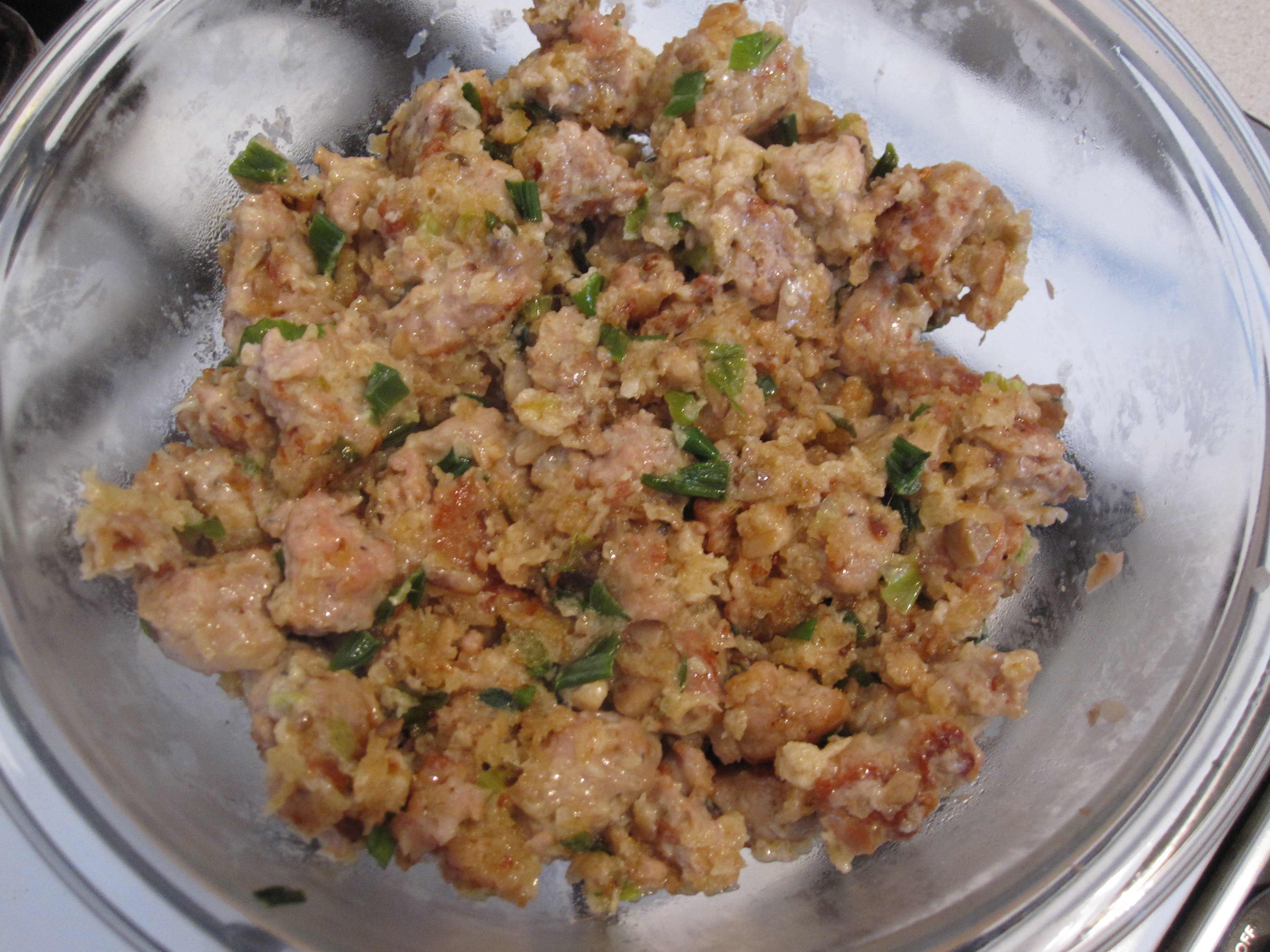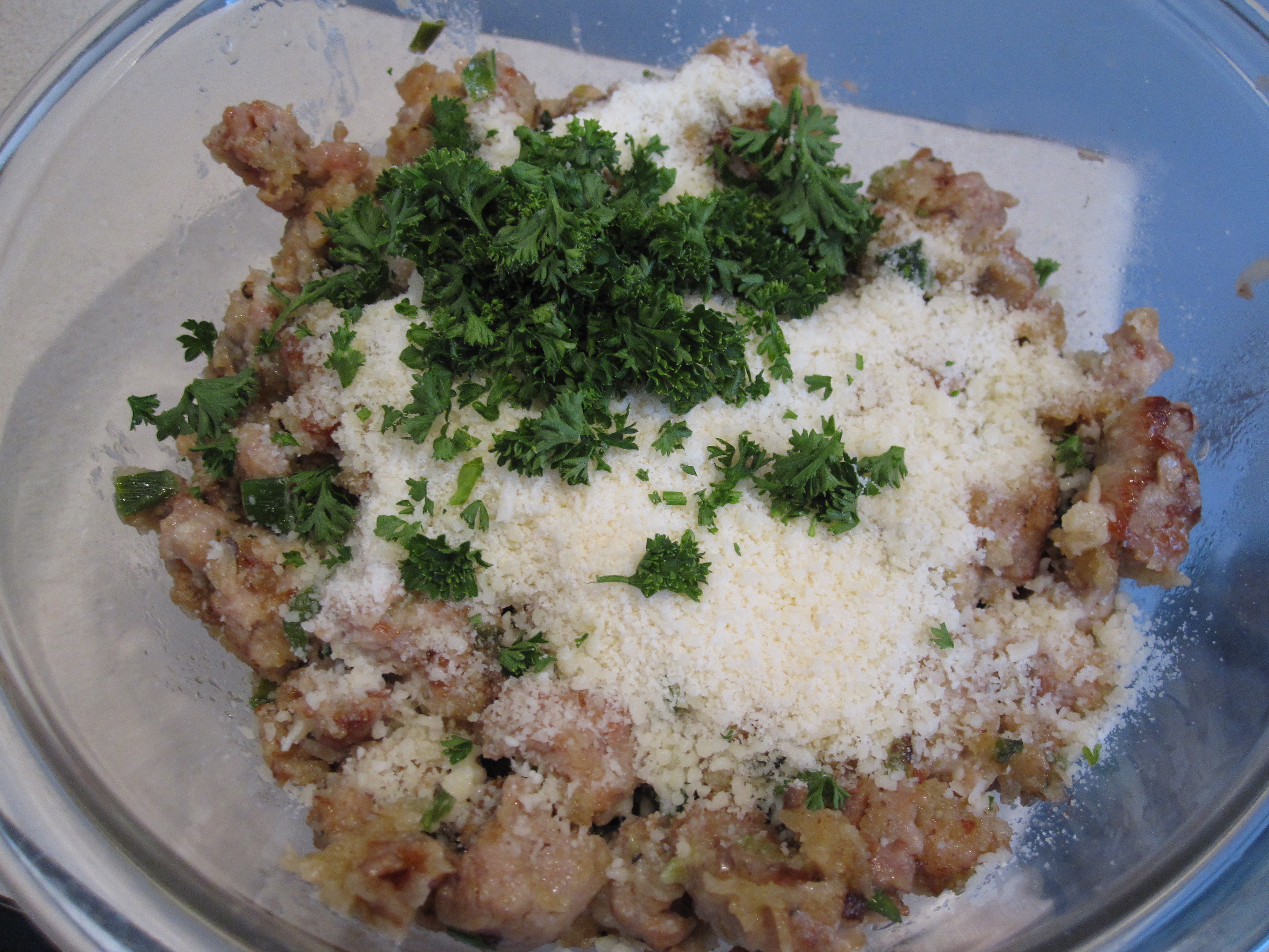 Brown the sausage, breaking it up as much as possible with the back of a wooden spoon. I should have worked a little harder at breaking it up as I think it would have helped when it came time to stuff the caps.