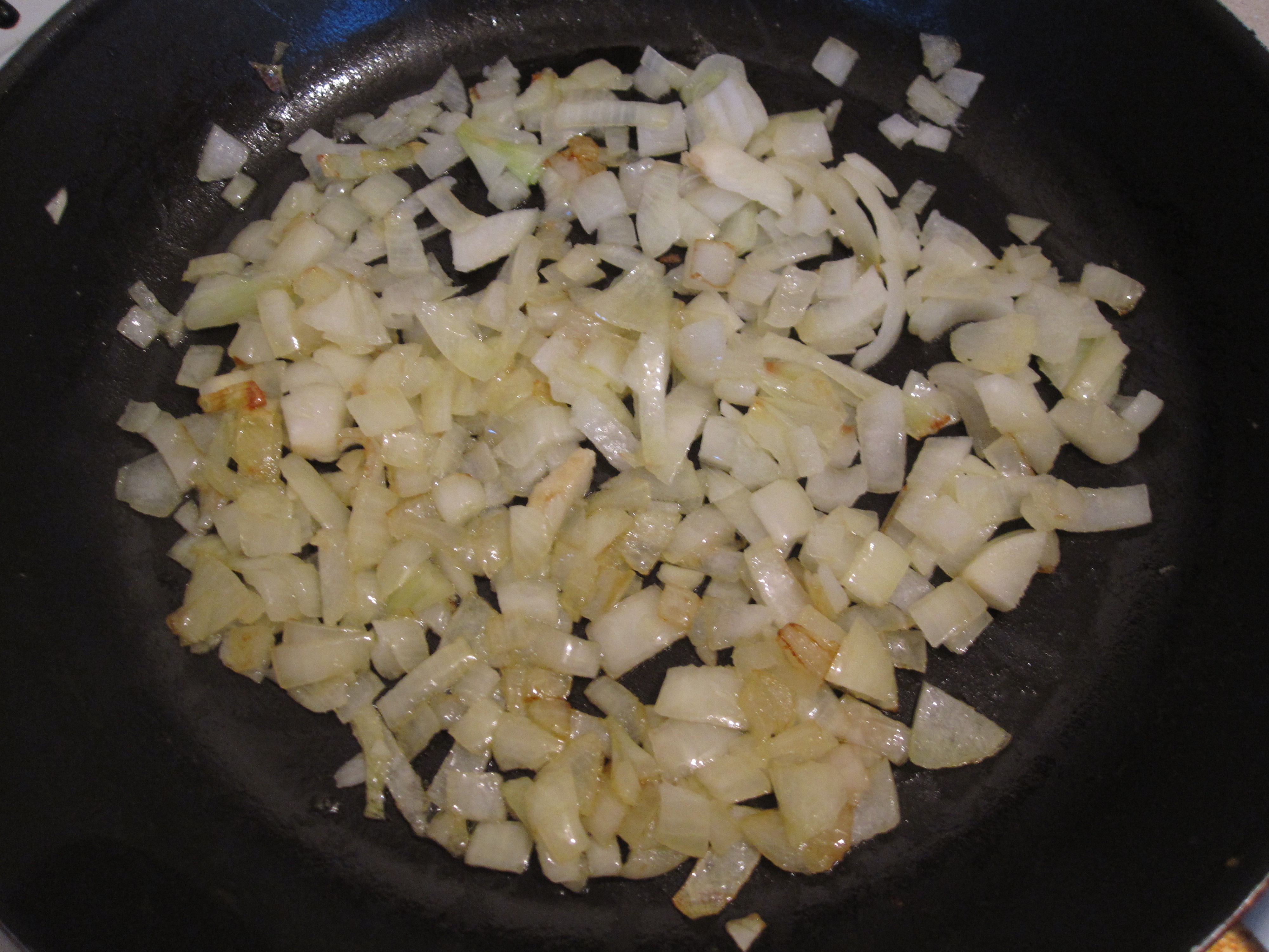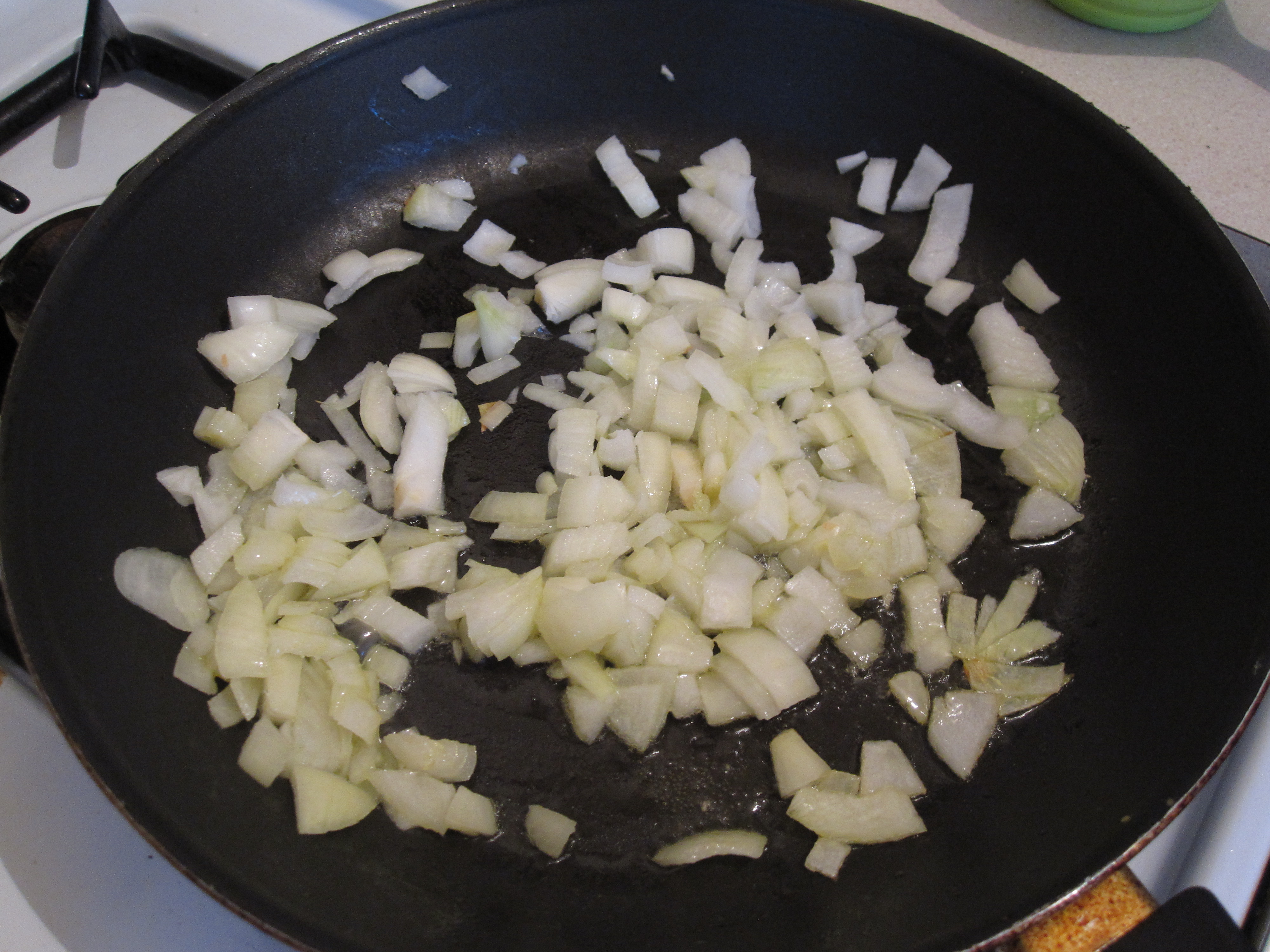 Like 95% of the things I make, this one starts off with sauteing some onions in olive oil.