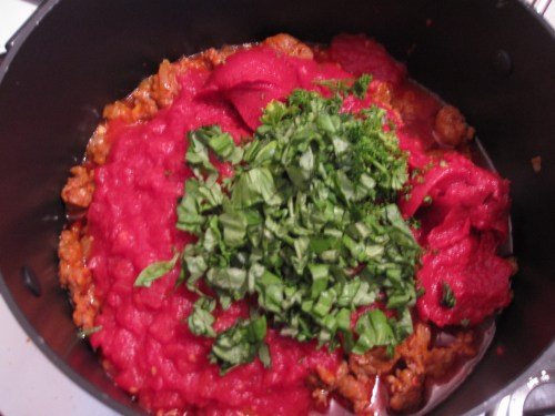And then add the tomato/sausage sauce