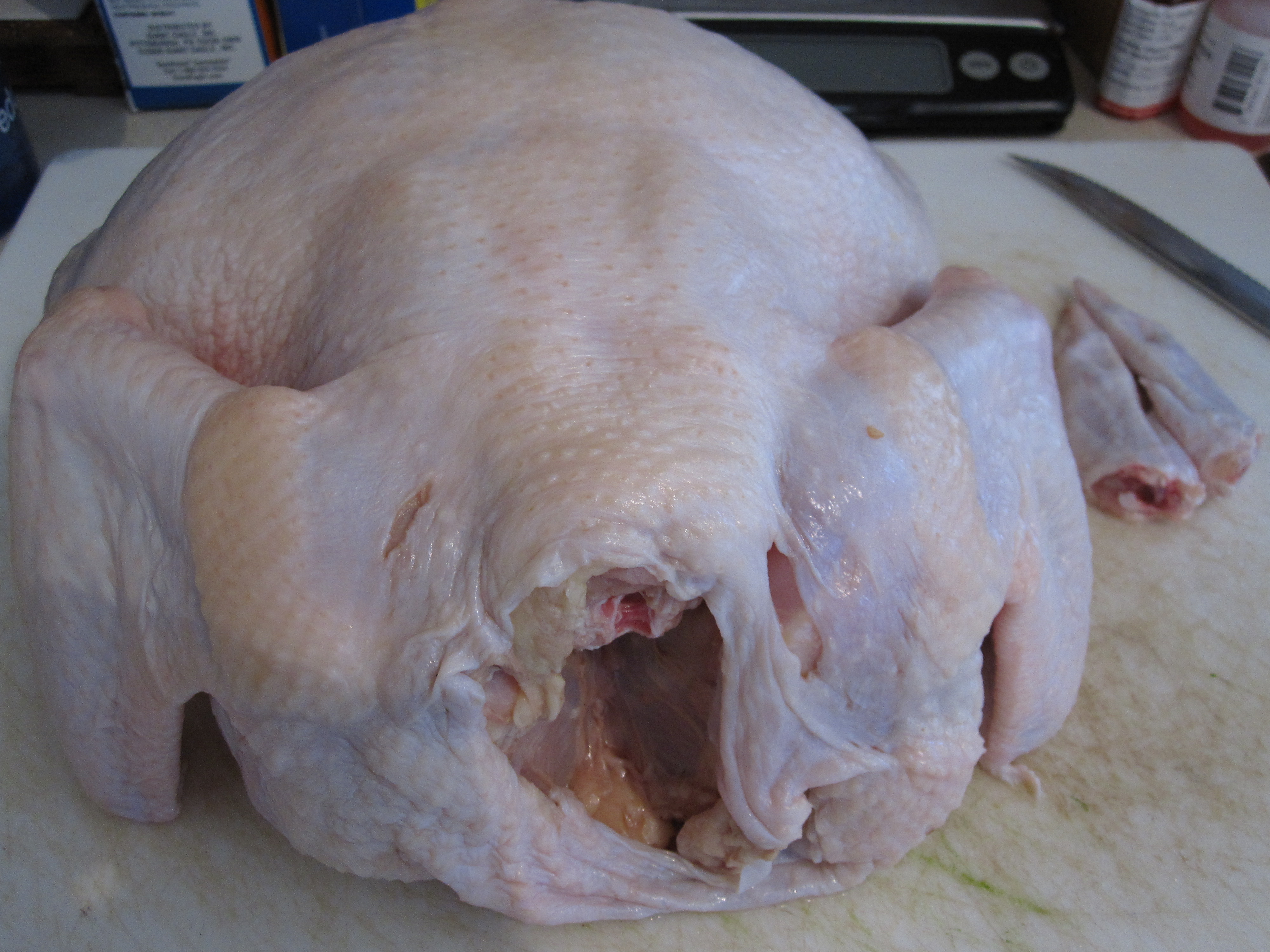 On to the bird… After washing it inside and out I had G cut off the wing tips. Set these aside along with the neck, heart and gizzard.