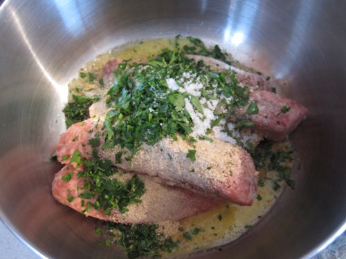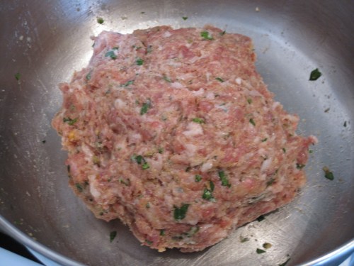 While it simmers down for almost 2 hours, make the meatball mixture and set aside until the last 20 minutes of simmering.