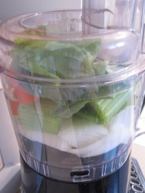 I had never seen the step of making a raw vegetable paste and simmering it into the water.  I haven’t made too many soups I guess.  The rest is adding a huge amount of fresh cut vegetables that cook down and into the soup an amazing amount.