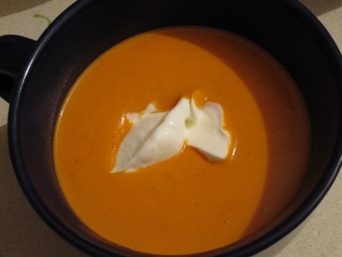 That is just about it! Bring up to temperature while continuing to stir and serve. We added a little dollop of sour cream which added to the rich and creaminess and was a little cooling dab to the bit of spice. They made a great combo.