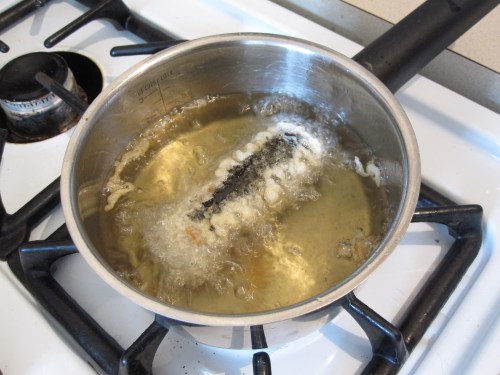These are cut in half. When I said tempura, I meant that these whole pieces were going in. Be sure to follow the directions on the tempura box and use cold water.