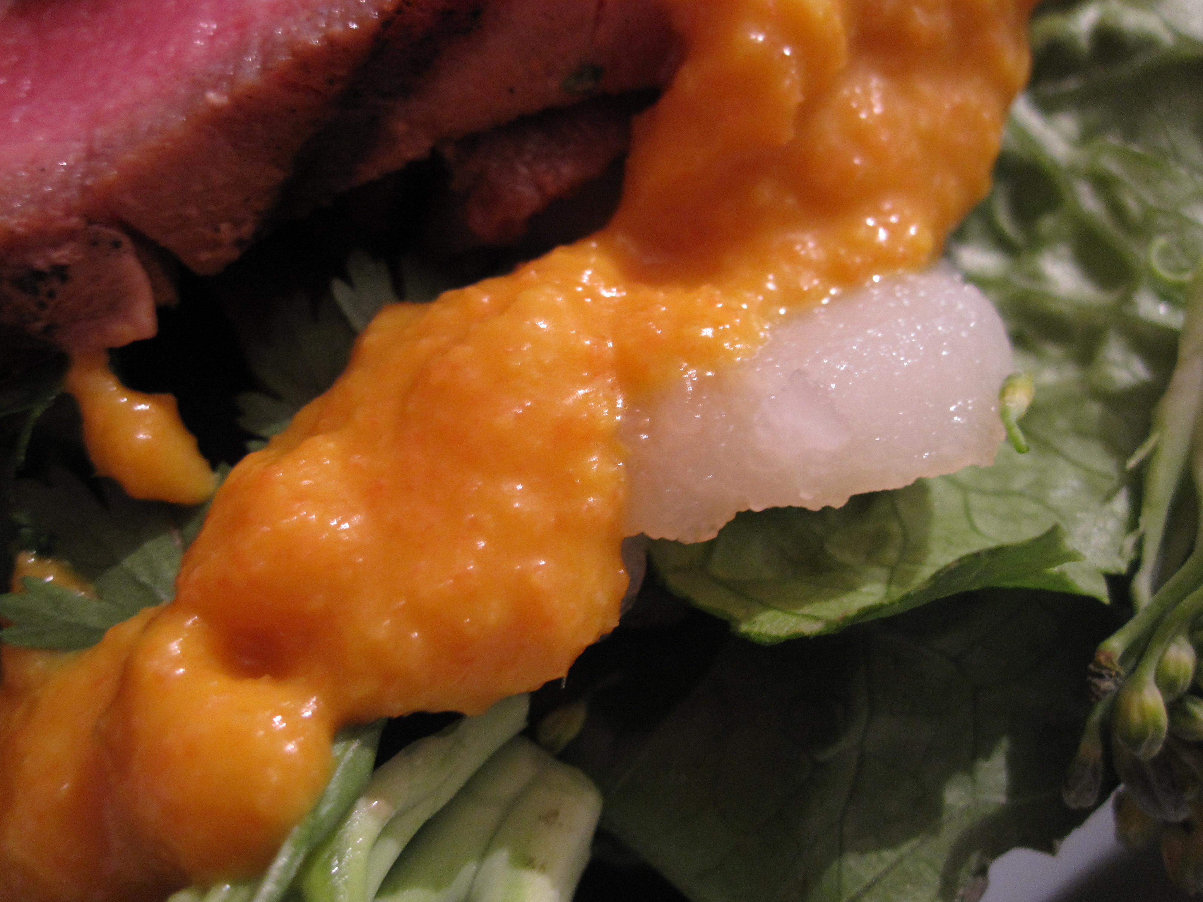I’ve professed my love for homemade salad dressings on numerous occasions and I have made a few recently that were particularly delicious. The picture you see above is of a seared tuna salad with ginger-miso dressing, like one you would get a good Japanese restaurant. The work involved in this dressing mostly comes in the shopping for the ingredients! Otherwise, it’s pretty much a process of prepping the ingredients and throwing them in a food processor (or blender). It can’t get much easier and you will love the way it tastes.