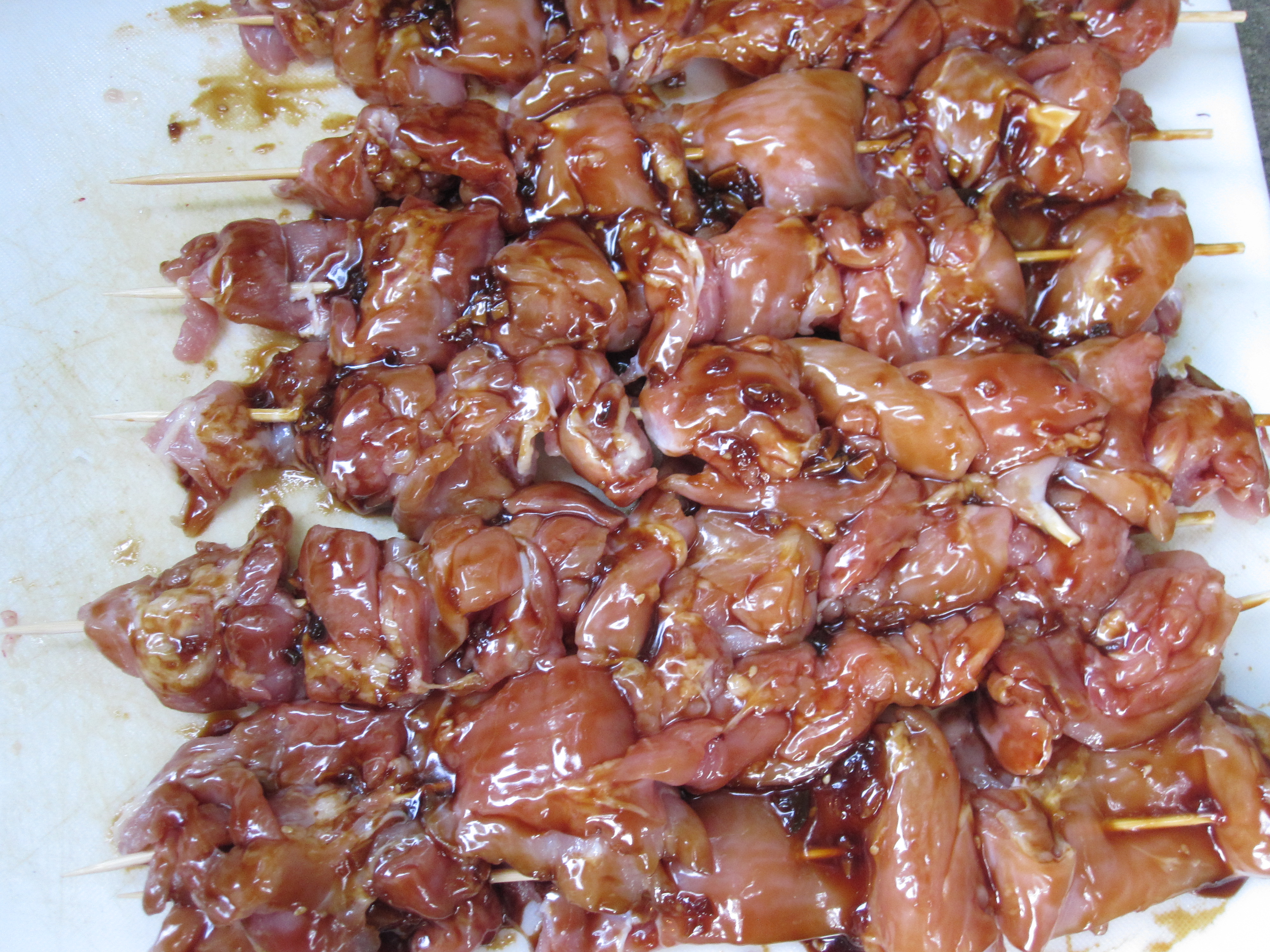 I had a hankering for Chinese street style chicken on a stick and decided to expand and make my own glaze. I have used Soy Vay brand teriyaki sauce before but wanted to make my own and make it spicier and alcoholier. These are boneless skinless chicken thighs with my improvised recipe of a bourbon teriyaki glaze.