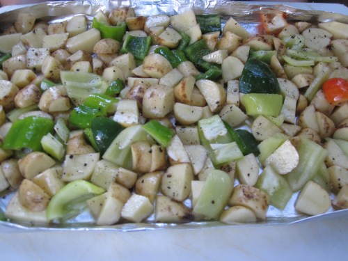 We made a side of cubed potatoes with some peppers wrapped in foil and placed directly over the coals.