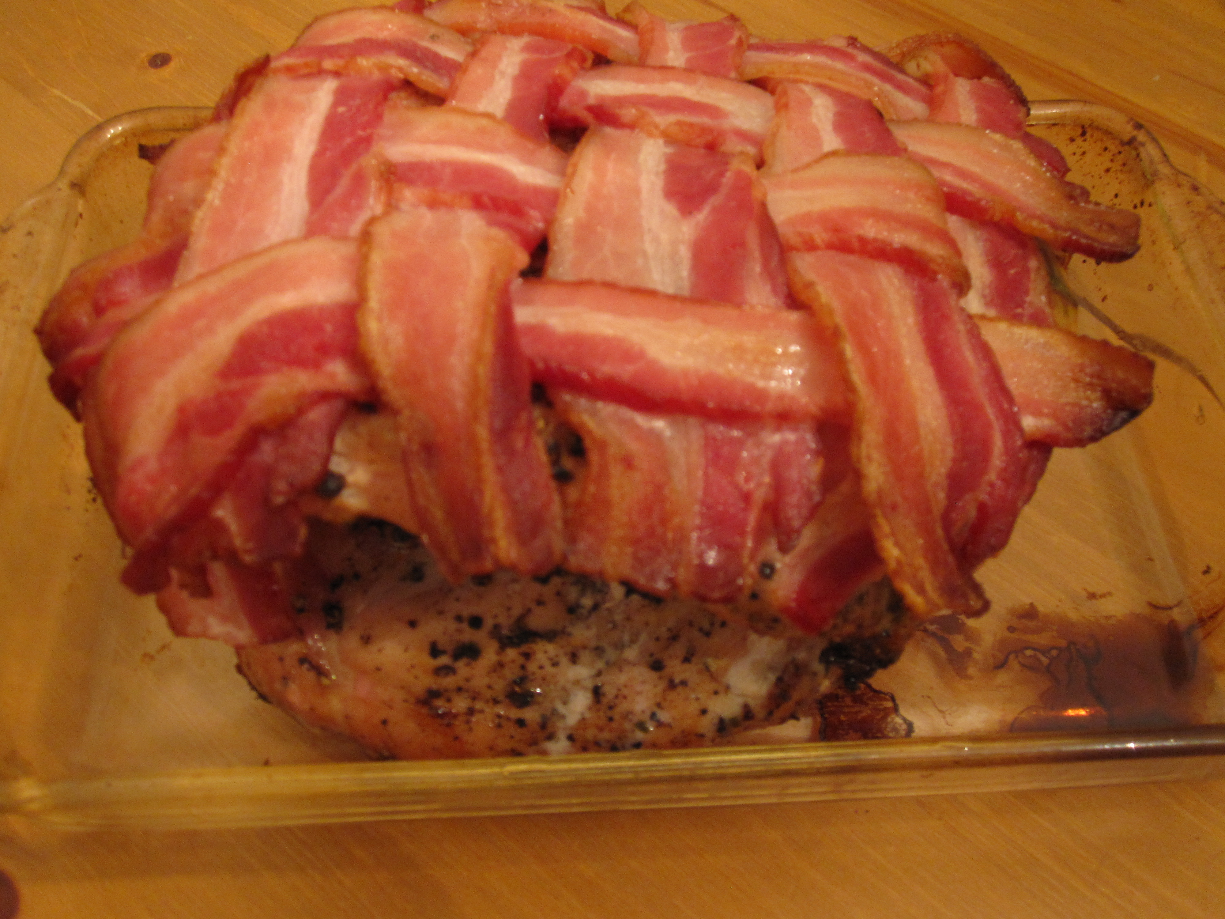 After about another hour the bacon, turkey, and potatoes were ready to go. The bacon was not cooked as much as I thought that it would have been or wanted it to be. In the future I would put it on earlier, but am not sure about putting it on one side and then having to flip it and keeping form.