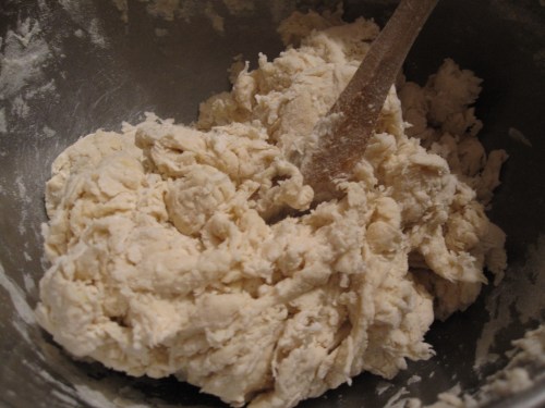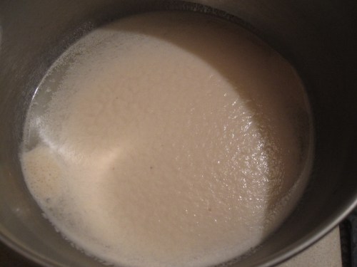 After about 15 minutes the yeast was active and ready to move on to the flour.  Add the flour slowly while mixing, but it is a messy job no matter what.