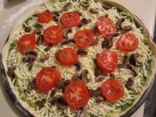 Tomato Mushroom Pesto Pizza on From Scratch Dough