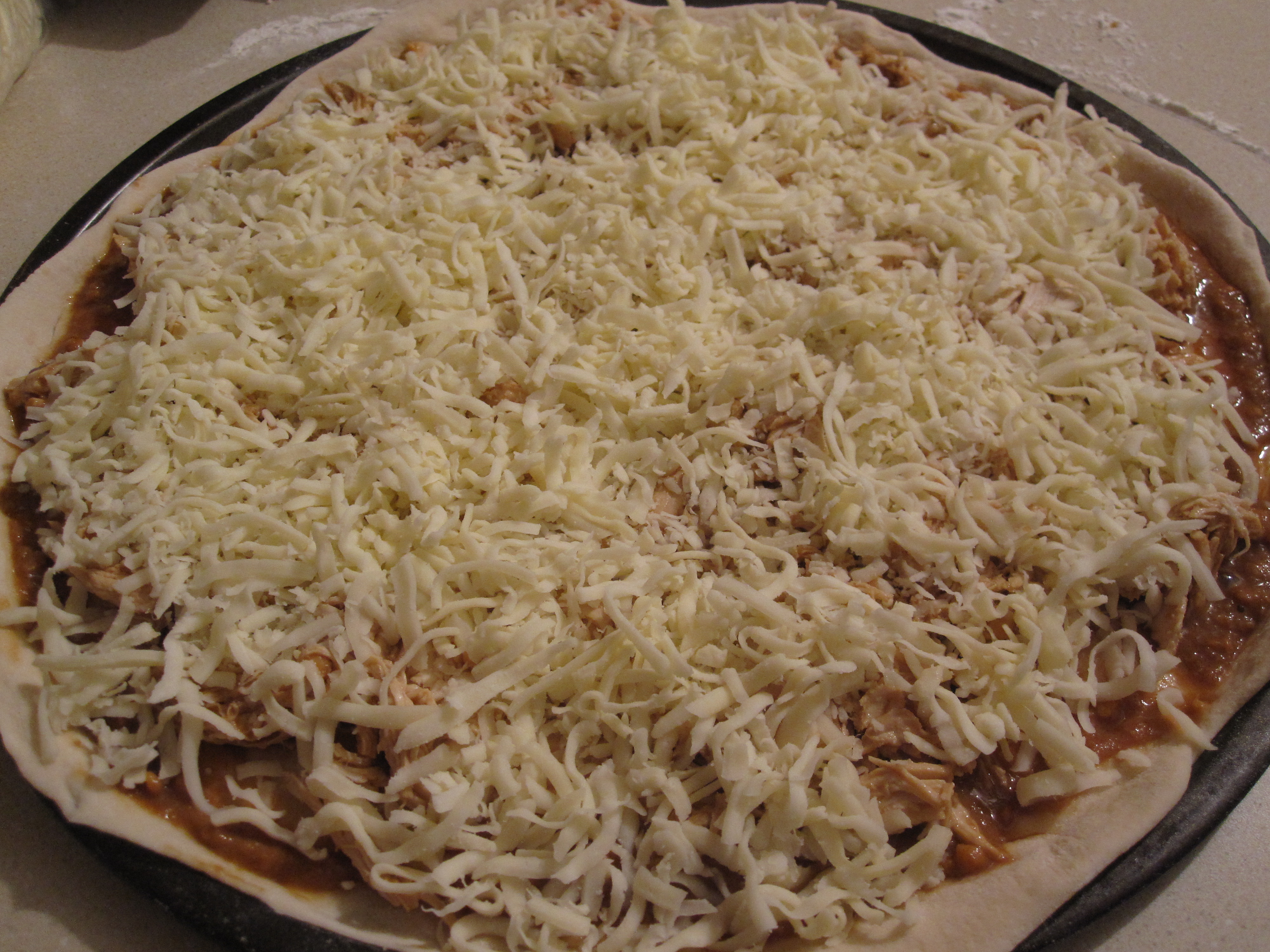 and then the cheese. We used shredded Italian-blend from Penn-Mac. Any cheese will do.