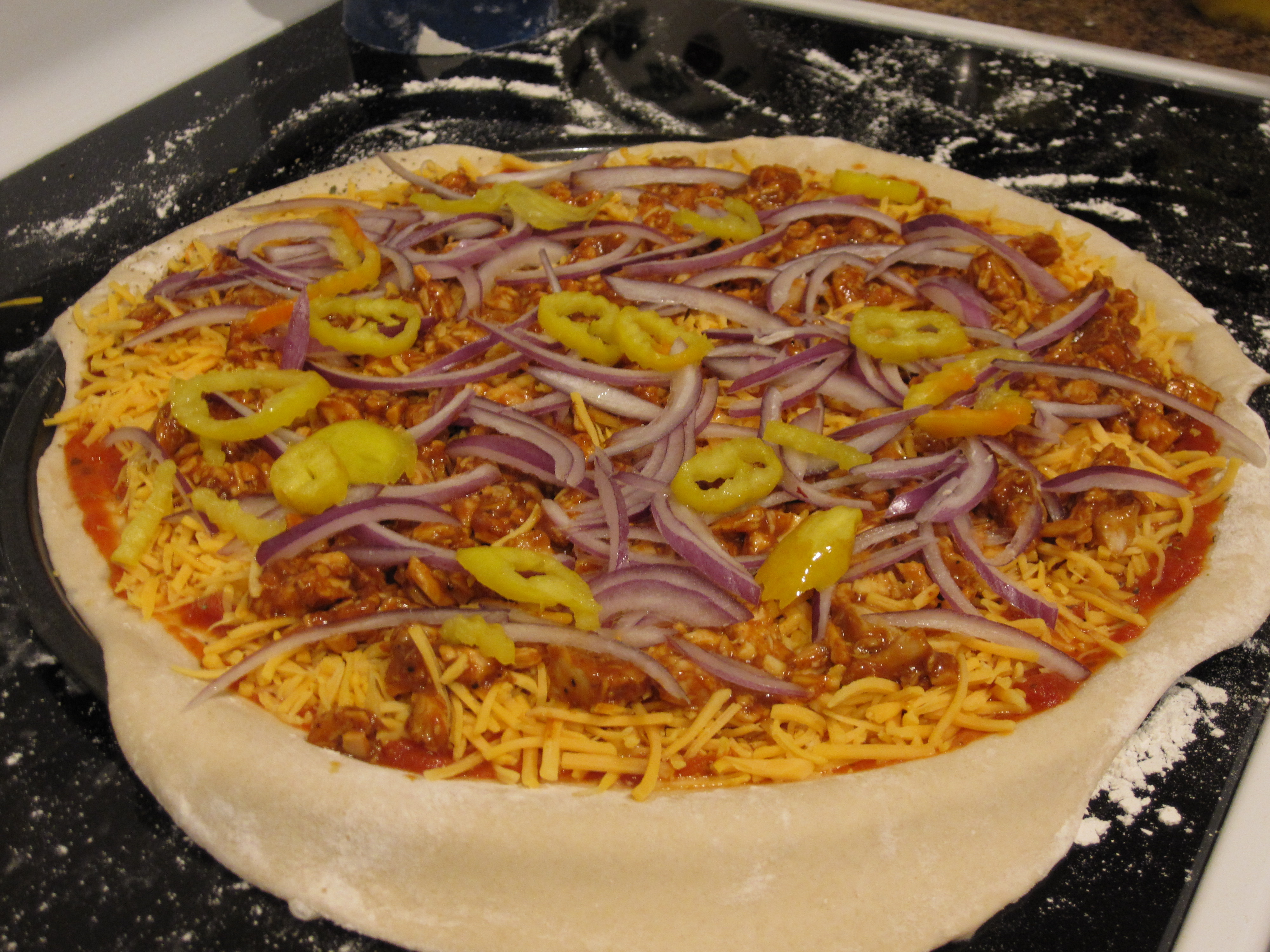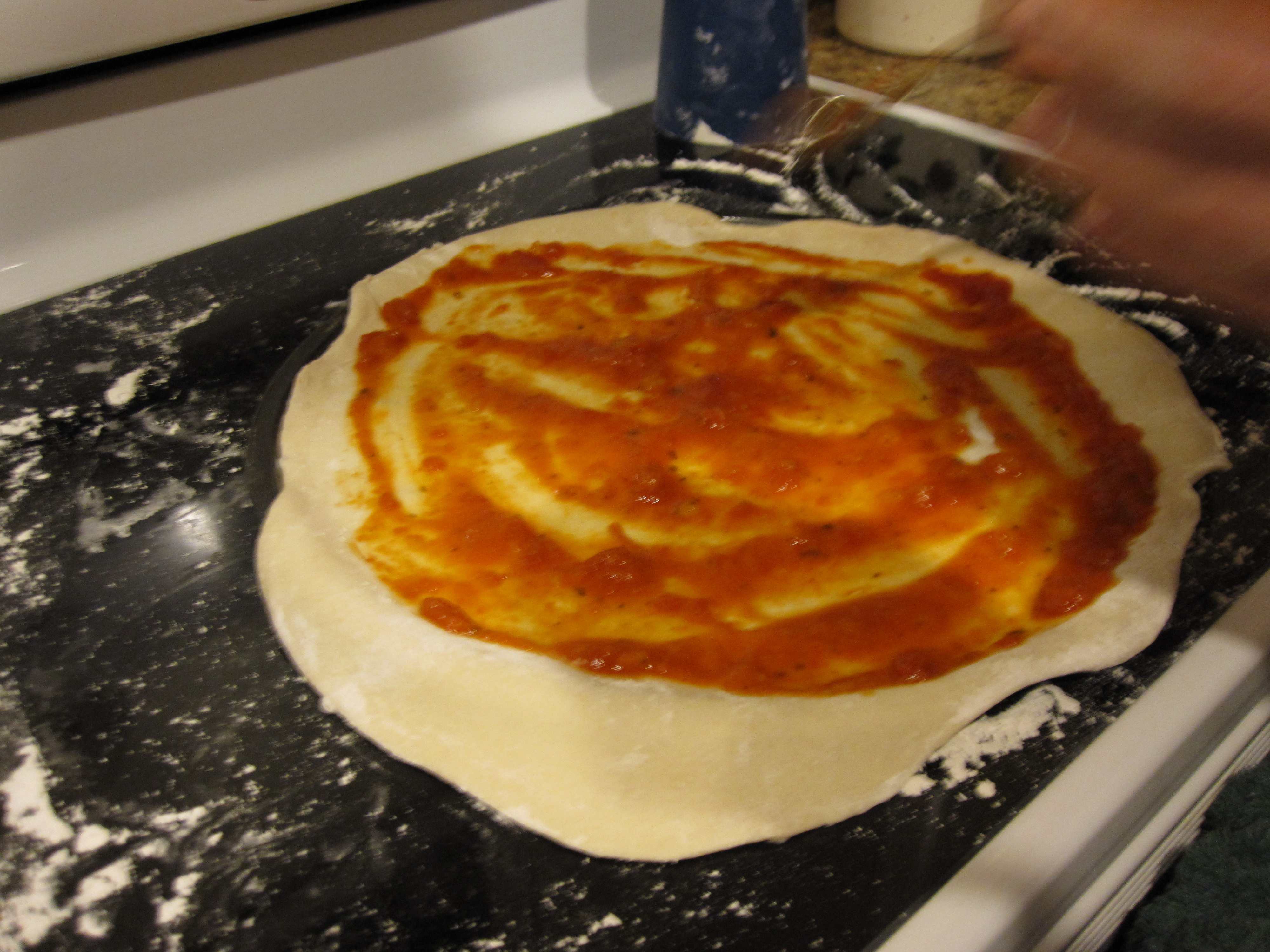 I rolled the dough out to the desired size while the grill was heating up. Once the dough and grill are ready, give the top of the dough a thorough spray of oil. You will then put the dough on the grill otherwise plain.