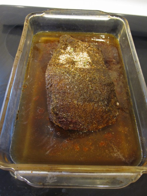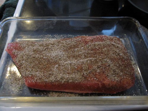 The rub was just a combination of some dried spices and whole peppercorns that I ground in our spice grinder. It was very loud at first and I ran it until itwas quieter but not fully ground. I wanted to keep the peppercorns a bit coarse.