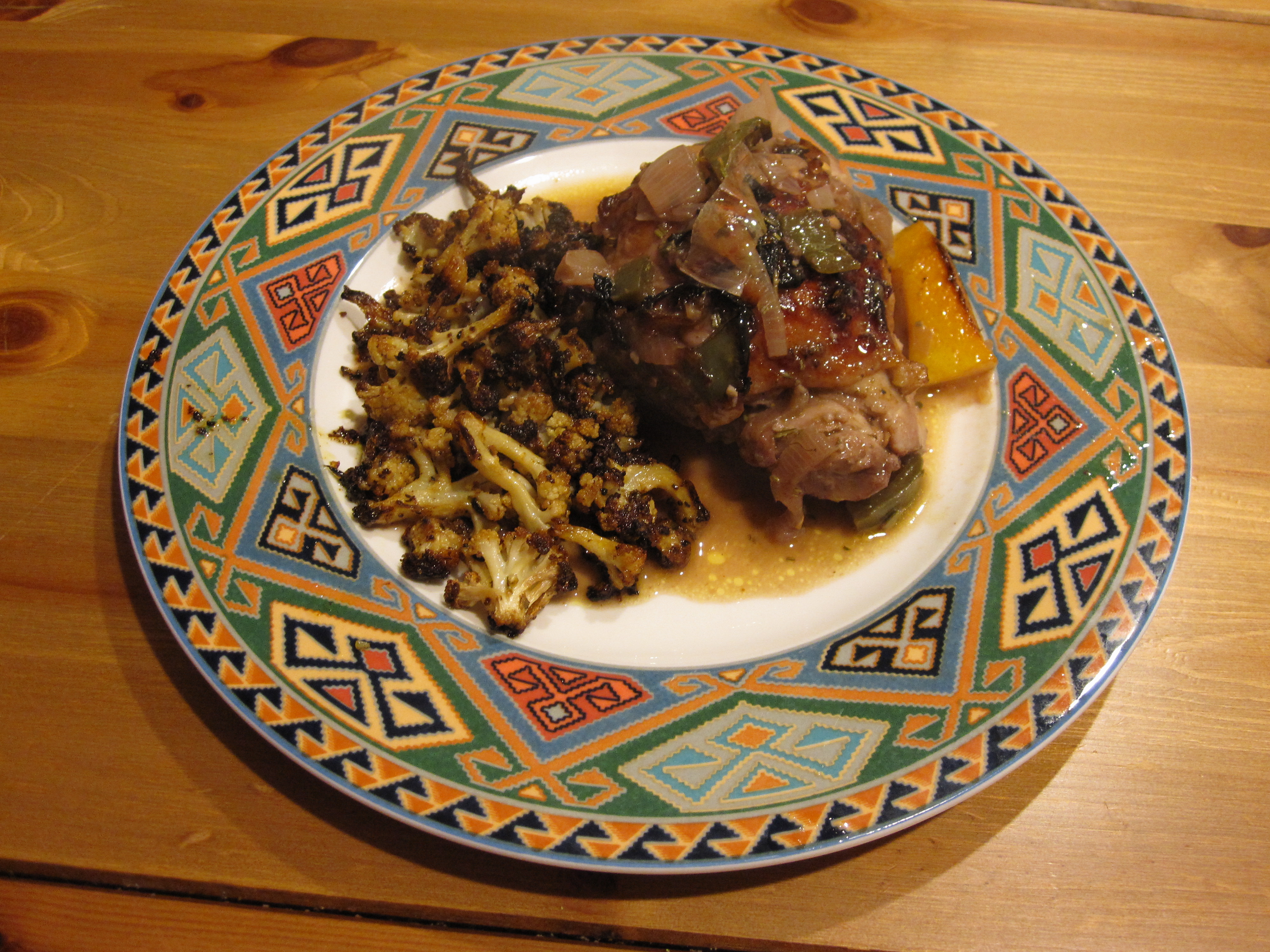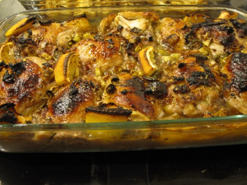 In certain circles, dark meat gets a bad reputation. I don’t really get it. Dark meat is much more juicy and flavorful than it’s white meat counterpart. A boneless, skinless chicken breast (about 4 ounces) has about 2.5 grams of fat and 110 calories. A 4 ounce thigh, with the bone and skin removed, has 4 grams of fat and also 110 calories. (Nutritional info courtesy of a great website). So why not live on the wild side and make chicken thighs for dinner? Ok. done. Oh, and chicken thighs are also a LOT cheaper than breasts.