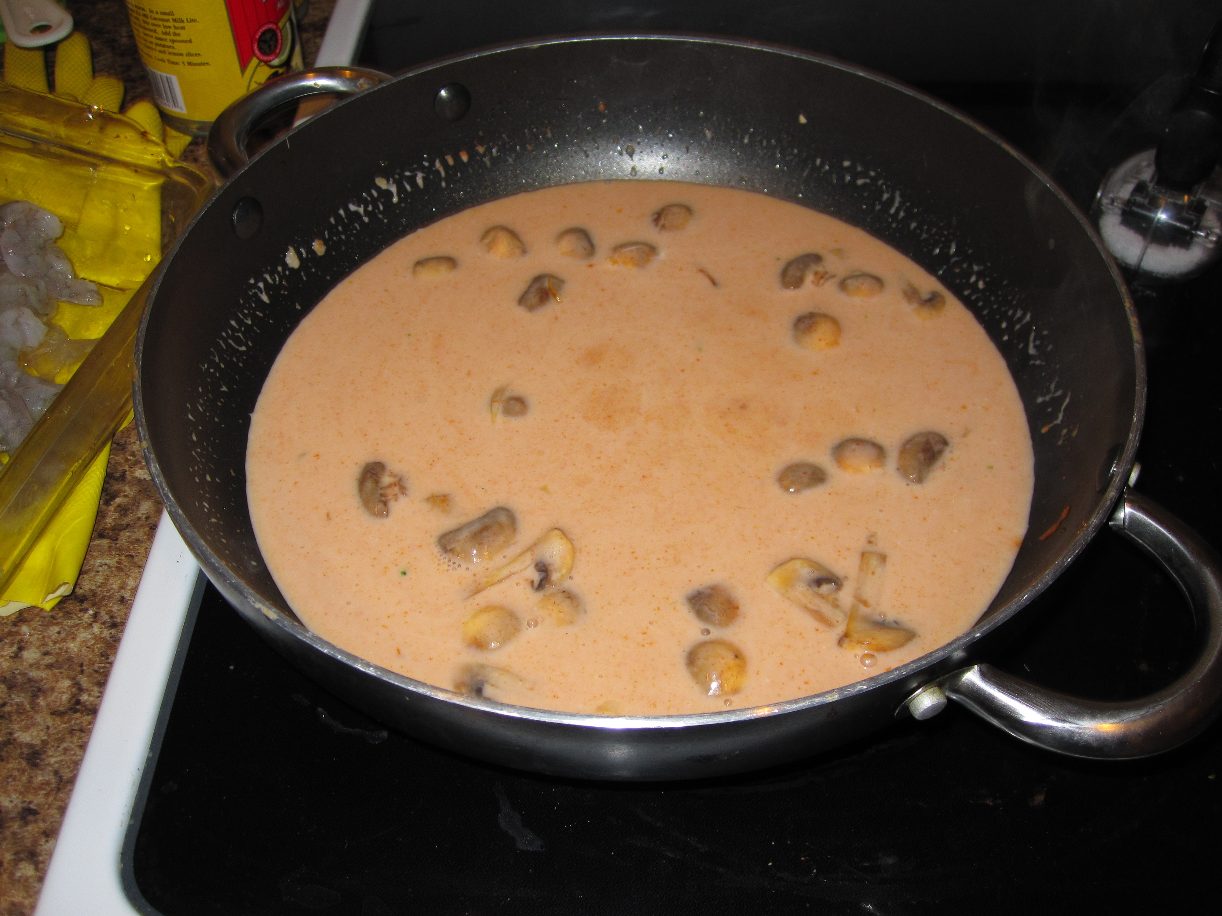 I sauteed the onion, garlic, ginger and mushrooms in a combination of chili oil and sesame oil until they were softened. I then added the coconut milk, curry paste, fish sauce and brown sugar as the recipe on the jar suggested.