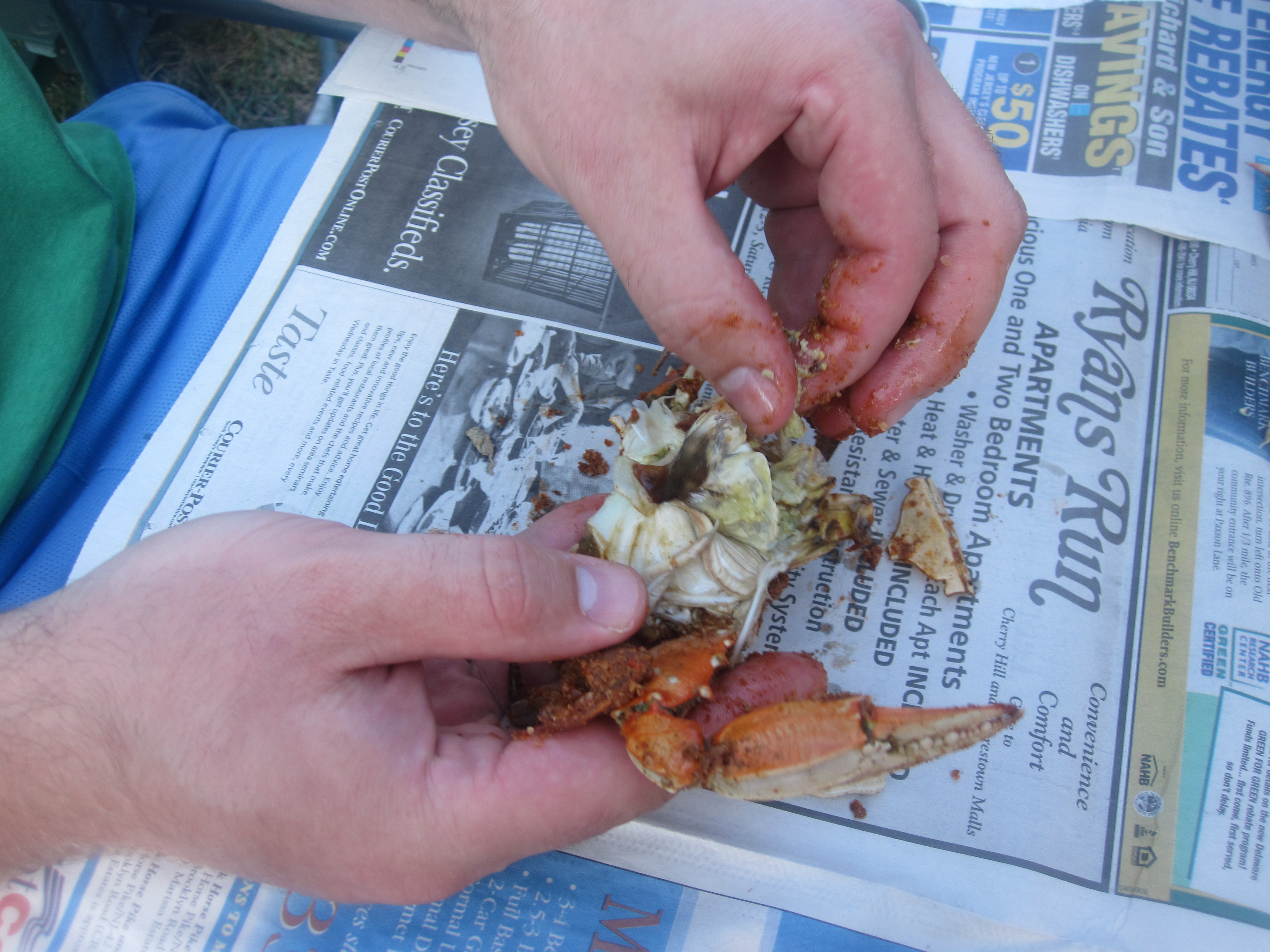 In order to do it right, you have to get down and dirty with them. If you are finishing a whole crab in less than 15-20 minutes, you are missing a lot of meat!