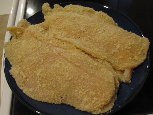 I purchased chicken breasts that were already sliced thin. If you are using regular chicken breasts you can slice them in half and pound them out. This is a bit easier if the chicken is still semi-frozen or if you buy it fresh, you can put it in the freezer for a few minutes to make it easier to slice.