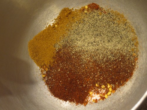 Next I prepared a dry rub by combining some dry seasonings.  I prefer doing this over using a store bought one as they are often packed with sugar and or can be way too salty.