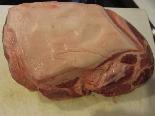 I let the pork rest for a bit so that it could be handled.  The fat jacket came right off and many other visible fat pockets were easy to remove, though some people(southerners) would keep most of them for the extra flavor.