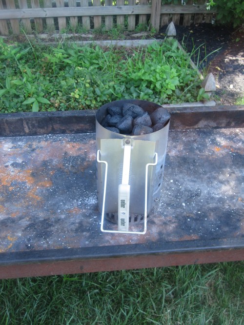 Pork butt also known as Boston butt (not Bill Belichick) was on sale at Harris Teeter for .99 cents a pound which made this 8 pounder quite a deal.  I wanted to slow cook it since it was summer and I had the time, but didn’t want to slow cook it for 14 hours.  I did a bit of an in between method using indirect heat.  First I got the grill started before I prepped the pork.