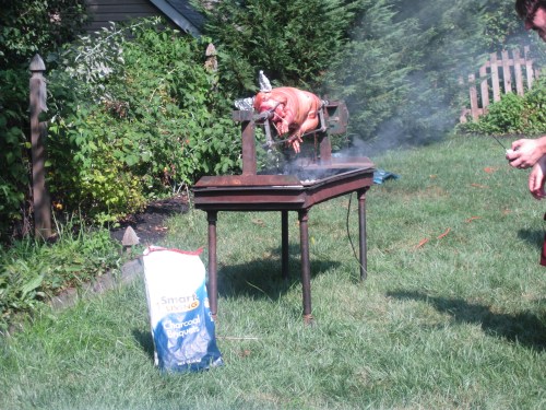 This is the last picture we have of the pig, which is about halfway through.  It turned out great though and we will do even better next time!