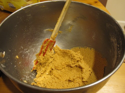 Like I said, it’s a pretty simple recipe. First you combine peanut butter and Splenda. I have been into the Natural Jif lately, which does not have any added sugar.