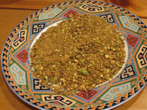 We bought some fresh flounder at Giant the other day and decided to try it with a bread crumb-less pistachio coating. I perused the internet and found that most pistachio crusted protein recipes included bread crumbs in the breading (go figure!). I didn’t want to use them though, so I just left them out. I also did not dredge the fillets in flour prior to dipping them in egg either, aiming to keep this recipe as low carb as possible. I started off with about 6 flounder fillets.