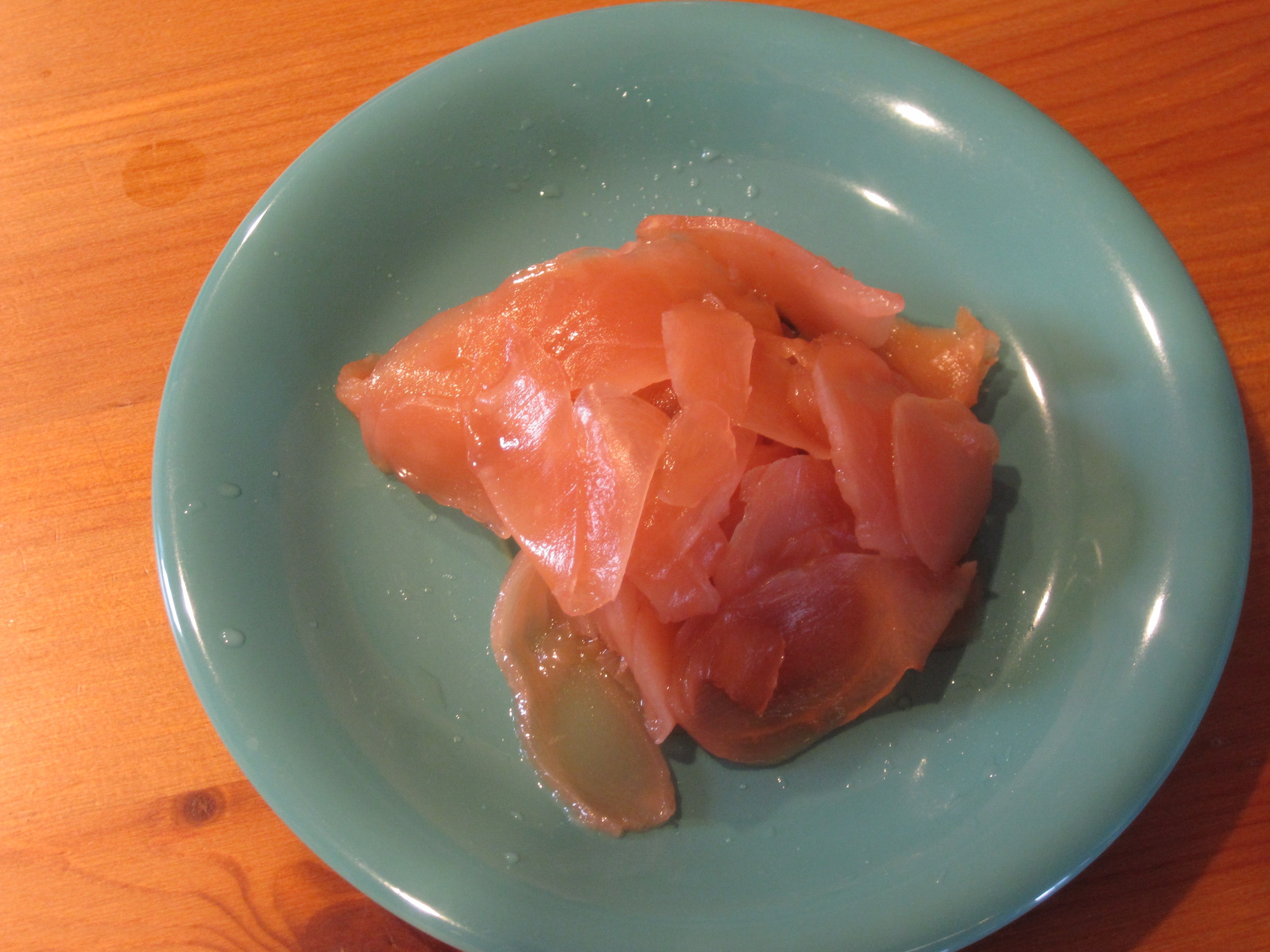 We purchase three types of fish (tuna, snapper, and salmon) and some shrimp (for shrimp tempura rolls). The quality of the fish was excellent- look how pretty!