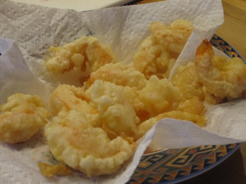 We tempura battered and fried the shrimp.