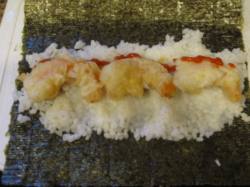 Next, the making of the shrimp tempura roll.
